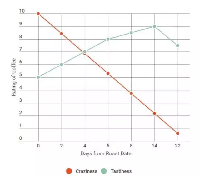 為了證實(shí)這個(gè)理論,我們持續(xù)品鑒了一個(gè)月,去追蹤咖啡豆的揮發(fā)和賞味,我們選擇了數(shù)據(jù)中的一組,以下就是我們的發(fā)現(xiàn)。
