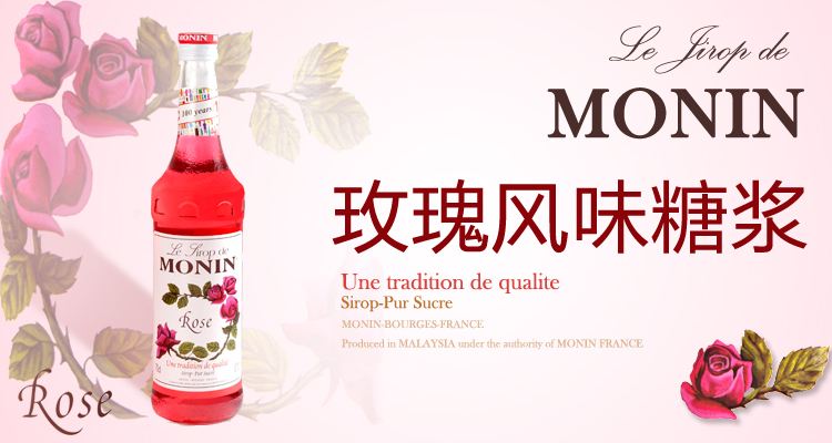 1. Monin的玫瑰糖漿是明星產(chǎn)品,毫不吝嗇的使用上等玫瑰精油。關(guān)于取舍的話大家看看自己的配方是不是需要用到糖漿。取得度相對(duì)來(lái)說(shuō)比較簡(jiǎn)單,風(fēng)味也比較柔和好把控。
