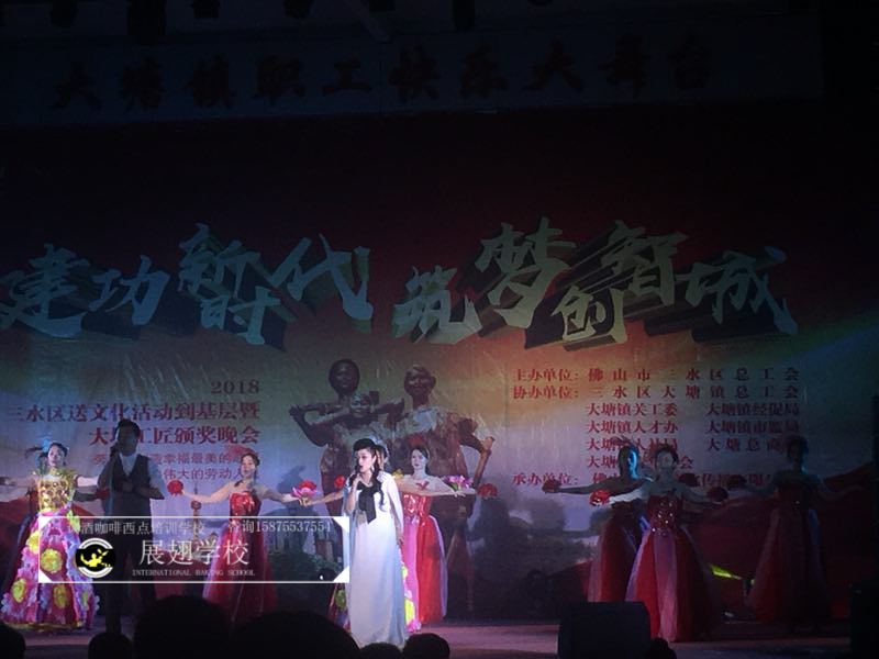 2018年5月5日,佛山展翅調(diào)酒咖啡西點培訓(xùn)學(xué)校的調(diào)酒師參加了2018三水區(qū)送文化活動到基層暨大塘工匠頒獎晚會,并作為表演嘉賓為現(xiàn)場獻(xiàn)上了一場精彩的花式調(diào)酒表演。勞動是創(chuàng)造幸福最美的歌謠,向偉大的勞動人民致敬。接下來,讓我們一起看看當(dāng)晚的現(xiàn)場表演吧。