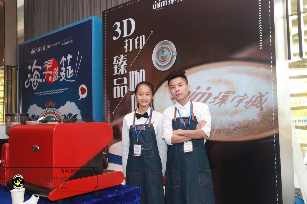 咖啡拉花技巧制作是其中的點睛之筆,猶如丹青上的一句題詩。以往受邀參加的大型活動中展翅學校的咖啡學員就制作過千層心、葉子、花卉等圖案,都使現場驚奇!