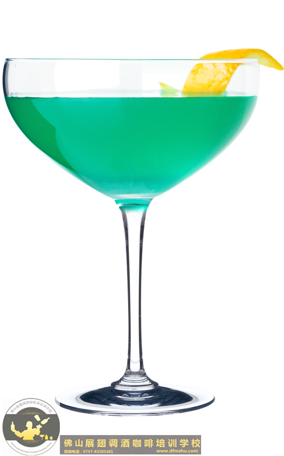 充分搖勻后濾入冰過(guò)的雞尾酒杯,以檸檬皮裝飾。